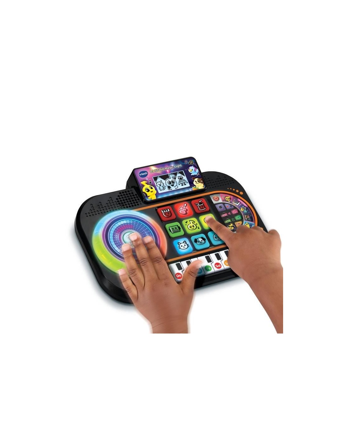 Découvrez la platine musicale DJ Studio Magic Light de VTECH, idéale pour les enfants de 3 a 7 ans. Avec ses 8 touches de piano, votre enfant s'initie a la musique en créant ses propres mélodies. Il peut imiter les DJ avec le disque a scratcher et ajouter des sons amusants grâce au pad lumineux. Inclus : 9 chansons et 27 mélodies.